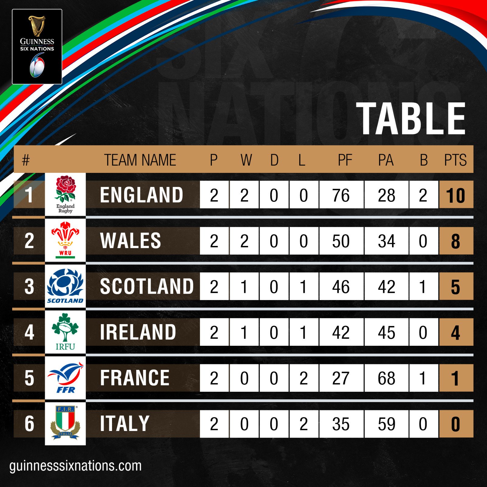 Six Nations 2020 table: Latest standings as England thump Ireland Six Nations 2020 action continues this weekend but how does the table look? Express Sport is on hand with the latest standings. Six Nations 2020 is in full swing and fans are keeping a close eye on the table. France and Ireland are the only unbeaten sides heading into the third round of fixtures.